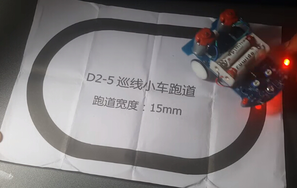 ▲There is a 16 mm wide black runway in the white field. Our tracking car can drive along the black runway automatically.