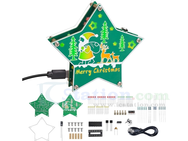 Pentagram Shape: We've designed a distinctive appearance for our Christmas light soldering project—a pentagram shape. This unique form makes it not only a festive lighting decoration but also a standout Christmas-themed desktop ornament. The symmetrical five-pointed star adds a sense of balance and charm, symbolizing warmth, hope, and celebration. Its eye-catching design ensures it draws attention and brings a joyful atmosphere to any holiday setting, whether it's placed on a desk, shelf, or windowsill.