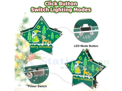 4 Lighting Modes: To make the Pentagram Light Soldering Project even more engaging and interactive, we've designed four distinct lighting modes that can be easily switched using a button. Each mode offers a unique visual effect, and adding a different layer of Christmas ambiance. Whether it's a gentle breathing glow, a festive blinking pattern, each lighting mode brings its own charm, making the project not only a fun DIY experience but also a customizable holiday decoration that suits a variety of moods and settings.