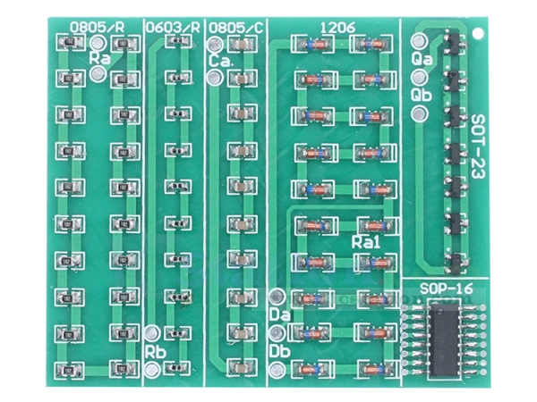 This is a soldering practice kit consisting of 68 component patches. No function, with class, name, and grade record labels on the back, suitable for beginners or electronics majors to improve their surface mount soldering skills.