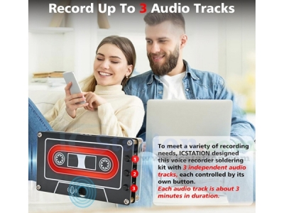 3 Independent Audio Tracks: To meet a variety of recording needs, ICSTATION designed this voice recorder soldering kit with three independent audio tracks, each controlled by its own button. Simply long press to record and short press to play — intuitive and easy to use. This upgraded design eliminates the limitation of single-track recorders, allowing users to store and manage three different recordings at once. Whether you want to record voice messages, sound effects, or custom audio prompts, this feature gives you more flexibility and creative space for your projects.