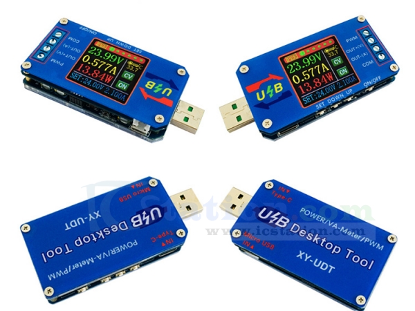 XY-UDT is a multi-function voltage-ammeter. It can work in three mode: Power Supply Mode,Voltage-Ammeter Mode,PWM Mode.Its main function is to output voltage as a constant voltage constant current source and measure the voltage, current, capacity, energy, time, power, temperature, fast charge protocol and output PWM signal. It can be used to test the discharge time and discharge capacitance of the battery.